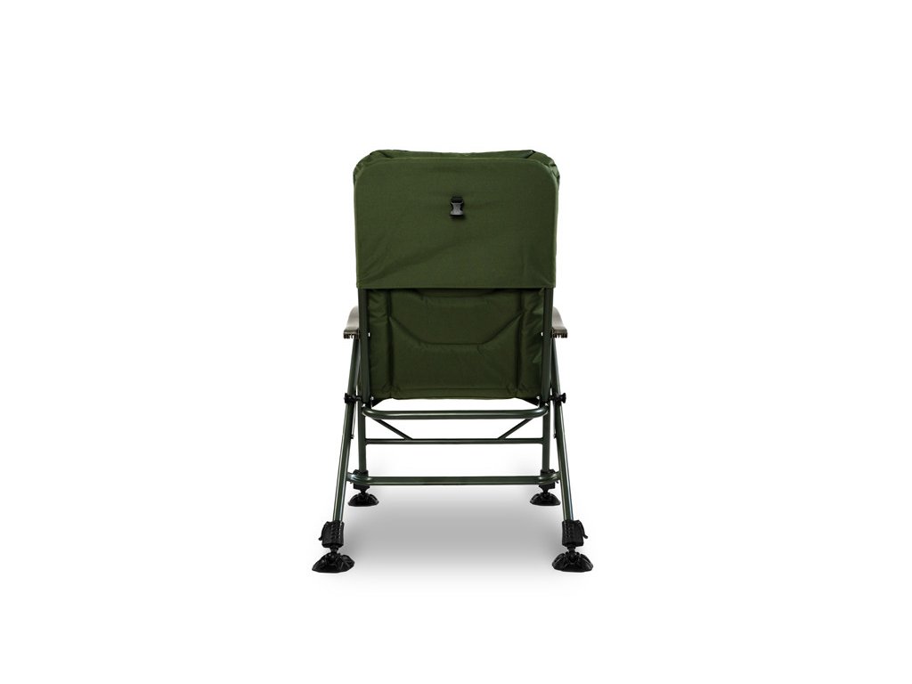 Výškově nastavitelné nohy umožňují přizpůsobit křeslo nerovnému terénu a zaručují stabilitu i v náročných podmínkách. O bezpečné zajištění polohy se starají flexibilní robustní patky, jejichž velká plocha účinně zabraňuje zapadnutí nohou do měkké půdy u vody. Navíc je křeslo vybaveno plastovým klipem, který fixuje jeho polohu během převozu a předchází nechtěnému rozevírání.