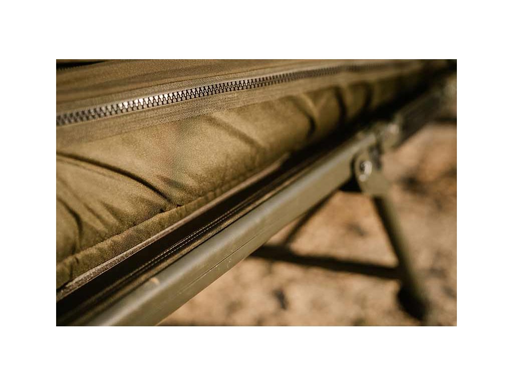 - Kompaktowe składanie: Rozmiar zawiasów umożliwia złożenie łóżka z przymocowanym śpiworem All Season, co tworzy uporządkowany i kompaktowy kształt.