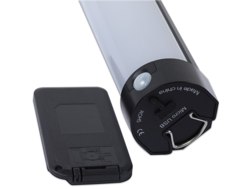 - Metalowy pasek: Lampa jest dostarczana z metalowym paskiem do mocowania na namiocie lub zadaszeniu.