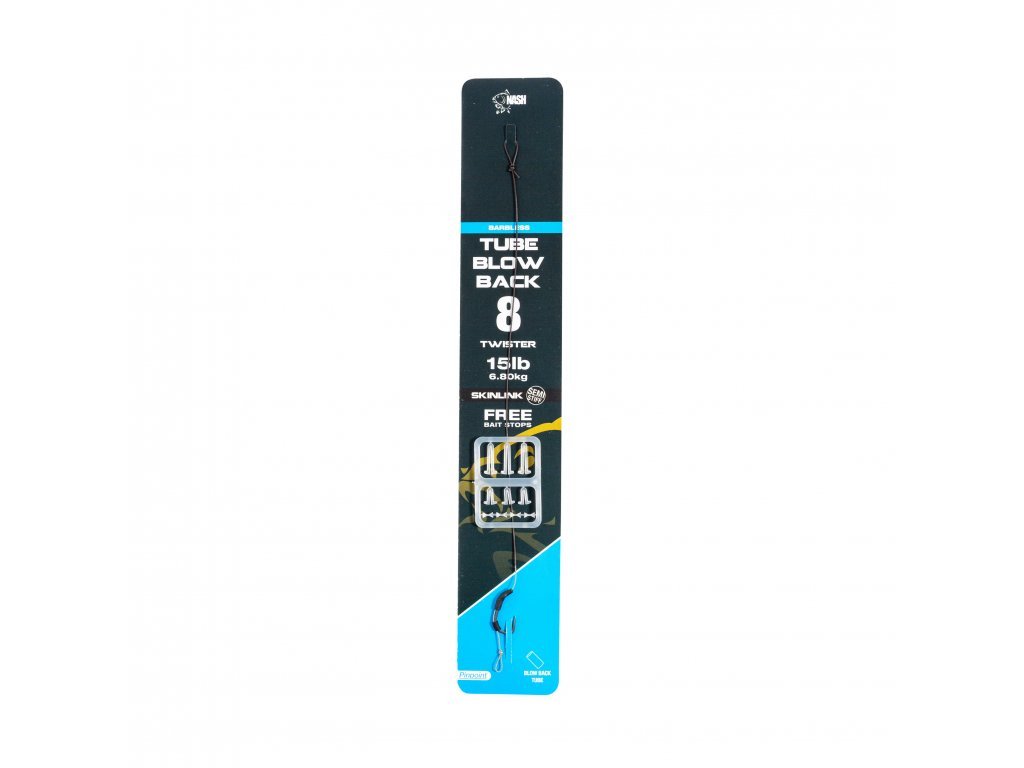 Blow Back Rig Kevina Nash – Nejuniverzálnější kaprařský návazec. Skládá se z návazcové šňůrky Skinlink, háčku Pinpoint Twister a hadičky Blow Back Tube.
